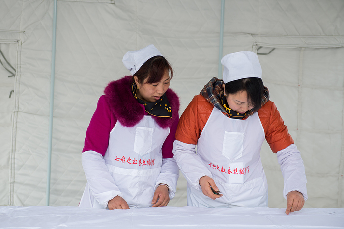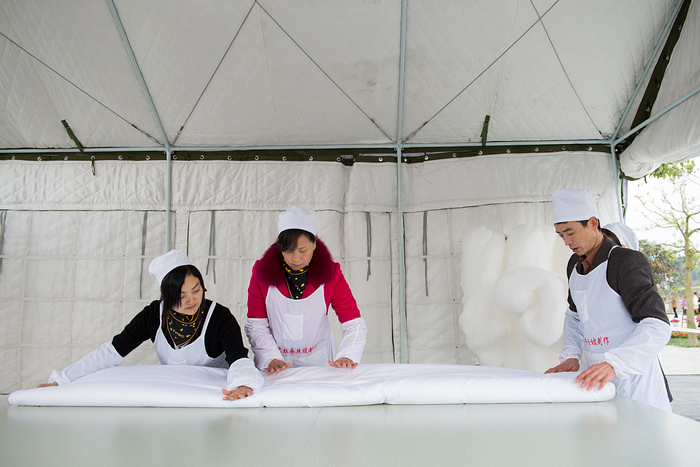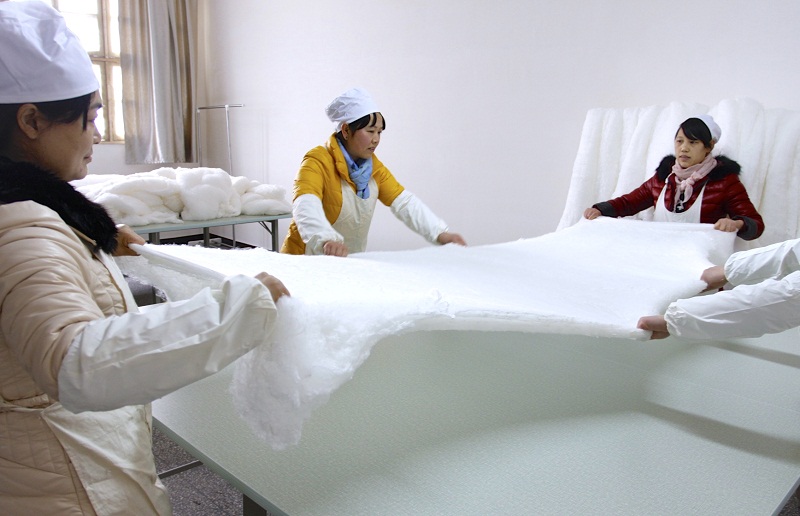 七彩之虹蚕丝被现场制作